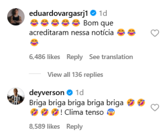 En tanto, Deyverson repitió en varias ocasiones "pelea, pelea, pelea", respondiéndo con sarcasmo y varios emoji de risa. "Clima tenso", escribió.