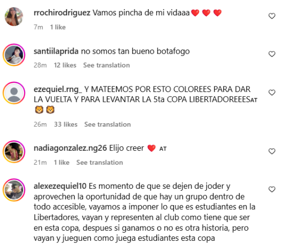 "El Pincha ya está en octavos", "elijo creer" o "aprovechen la oportunidad", fueron solamente algunos de los comentarios que inundaron el Instagram oficial del club.