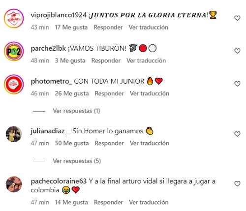 Apenas se definió el cruce, la cuenta de Instagram de Junior se llenó de respuestas de los fanáticos, quienes mostraron confianza.