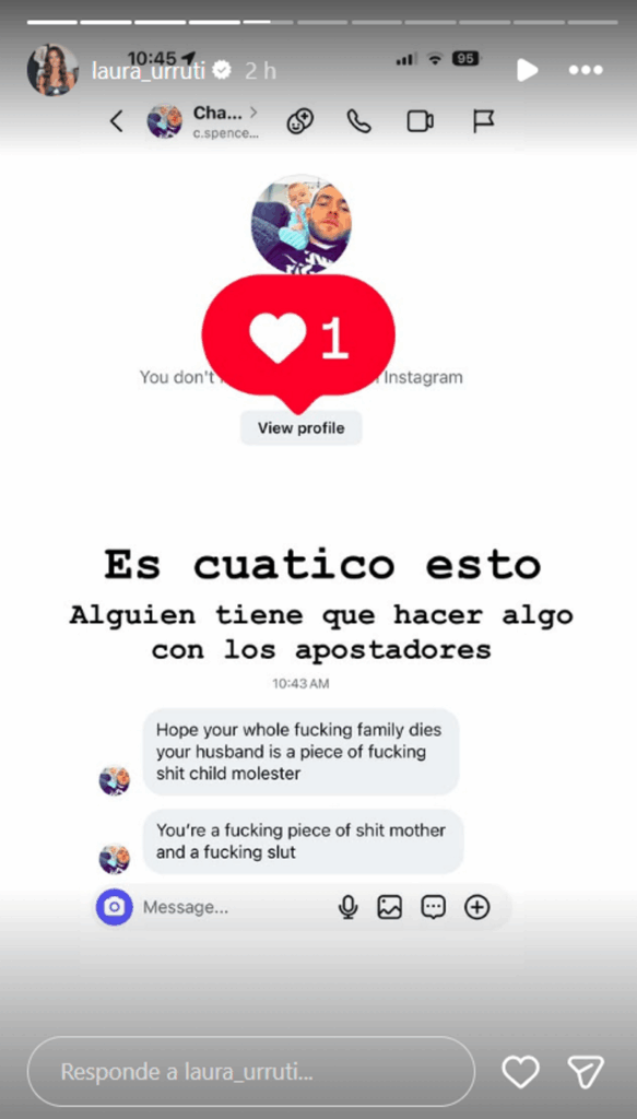 Por último, Urruticoechea subió una historia de una nueva amenaza en pleno duelo de Jarry por el Challenger de Madrid. “Es cuático esto, alguien tiene que hacer algo con los apostadores”, manifestó.