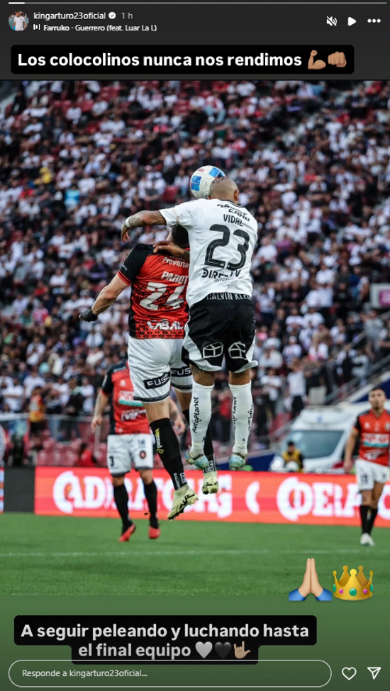 Más temprano, el mediocampista de 38 años alzó la voz en redes sociales y afirmó en una historia de Instagram que "los colocolinos nunca nos rendimos. A seguir peleando y luchando hasta el final equipo".