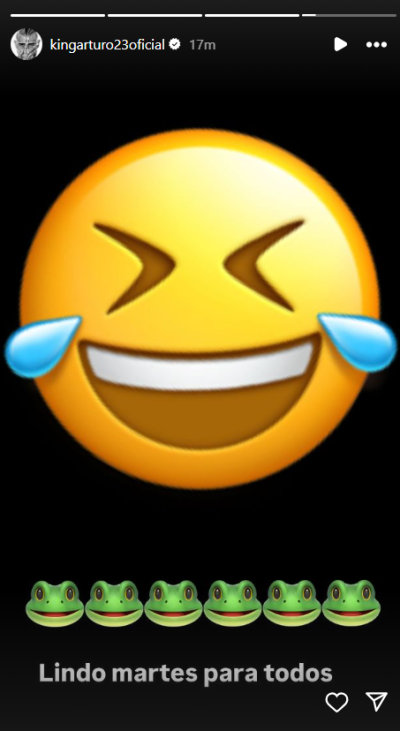"Lindo martes para todos", escribió el volante en una historia de Instagram, agregando emojis de sapos y uno muy grande risa.
