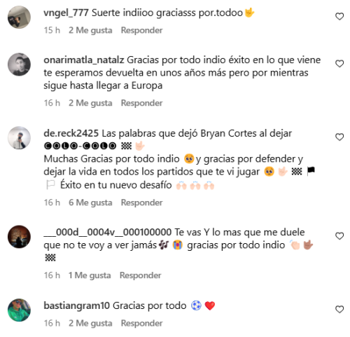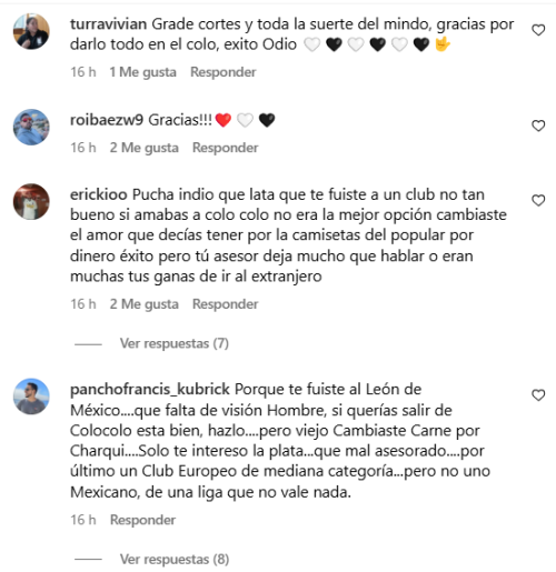 La decisión de Cortés no dejó indiferente a los hinchas albos, quienes acudieron rápidamente a su Instagram para desahogarse.