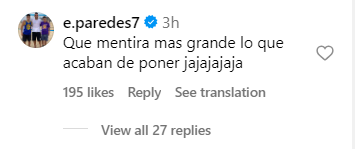 Sin embargo, el propio Paredes negó esta situación a través de un comentario en Instagram. "Qué mentira más grande lo que acaban de poner, jaja", escribió.