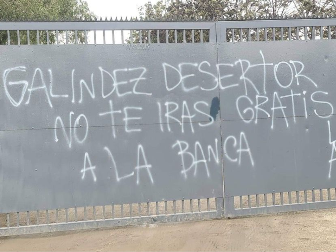 Pues bien, hoy se sumó un nuevo ingrediente al caos que el Caso Galíndez está generando en el conjunto universitario: el portón del Centro Deportivo Azul amaneció rayado con consignas en contra del guardameta. "Galíndez desertor, no te irás gratis a la banca", se puede leer afuera del CDA.