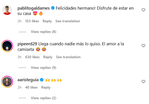 El King, su eterno compañero en la Selección Chilena y uno de sus más cercanos, comentó la publicación oficial con emojis de aplausos, destacando el regreso de otro histórico de la Generación Dorada.