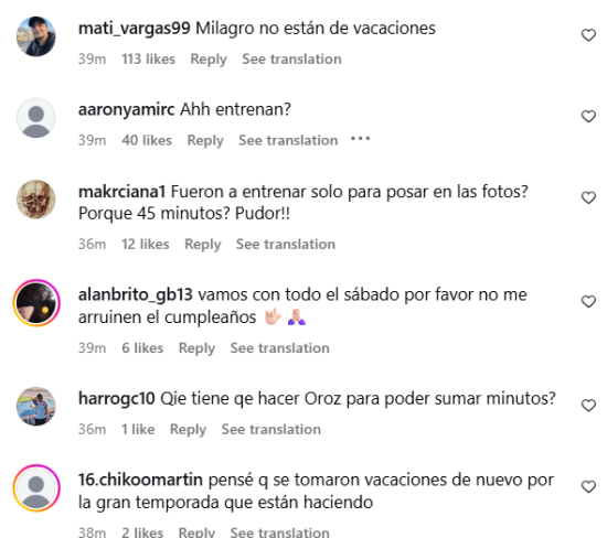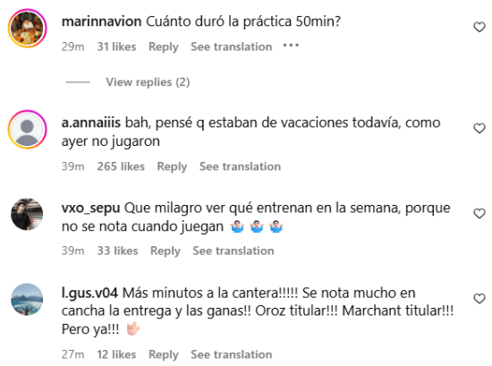 La afición del Popular explotaron en una publicación de Instagram subida por el club, donde compartieron imágenes del entrenamiento.