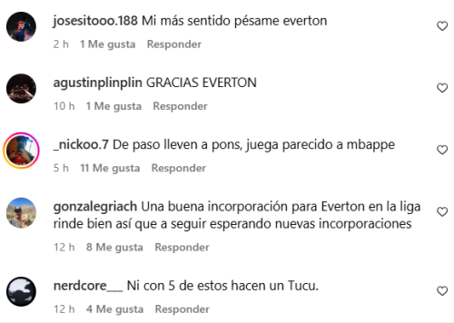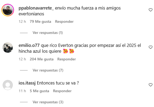 "Mucha fuerza a a mis amigos evertonianos", "Gracias Everton" o "el hincha azul los quiere" fueron algunos de los irónicos comentarios.