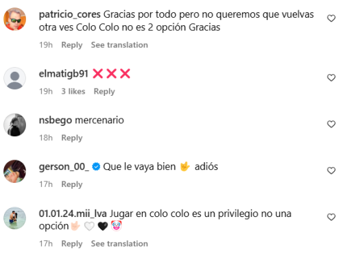 El posible regreso de Brayan Cortés a Colo Colo generó gran molestia en algunos hinchas albos, quienes dejaron diversos comentarios en la cuenta de Instagram del iquiqueño.