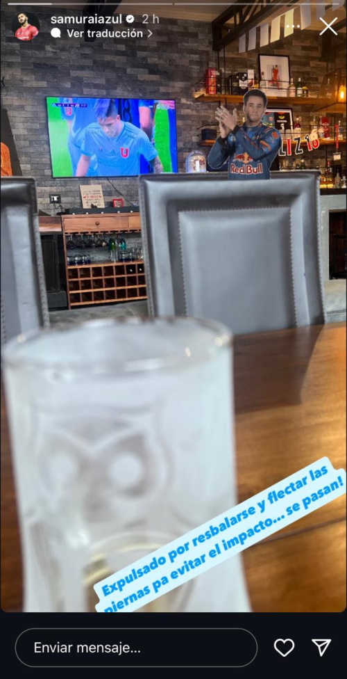 En una historia de Instagram, Herrera cuestionó la decisión y señaló que el atacante del equipo de sus amores fue "expulsado por resbalarse y flectar las piernas para evitar el impacto. Se pasan".