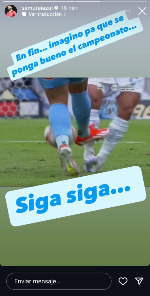 Samurai Azul no se quedó ahí y subió un segundo posteo en el que ironizó: "En fin. Imagino (que es) para que se ponga bueno el Campeonato. Siga siga".