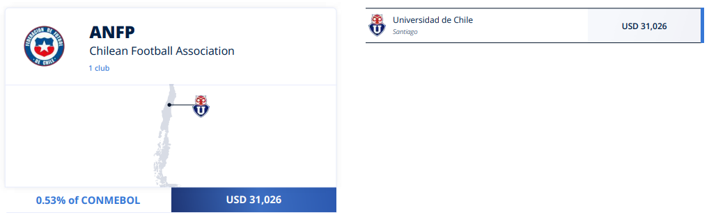 En nuestro continente, River Plate de Argentina es el elenco que recibió más aportes, con un total de USD$1.204.547, seguido por Flamengo de Brasil y Nacional de Uruguay.
