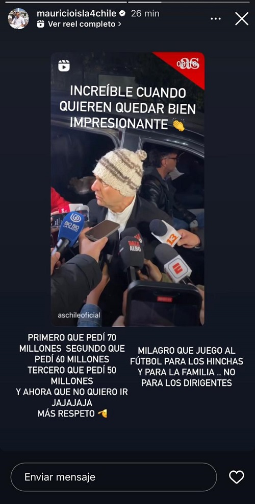 En una historia subida a su Instagram, el bicampeón de América señaló: "Primero, que pedí $70 millones. Segundo, que pedí $60 millones. Tercero, que pedí $50 millones y ahora que no quiero ir, jaja. Más respeto".