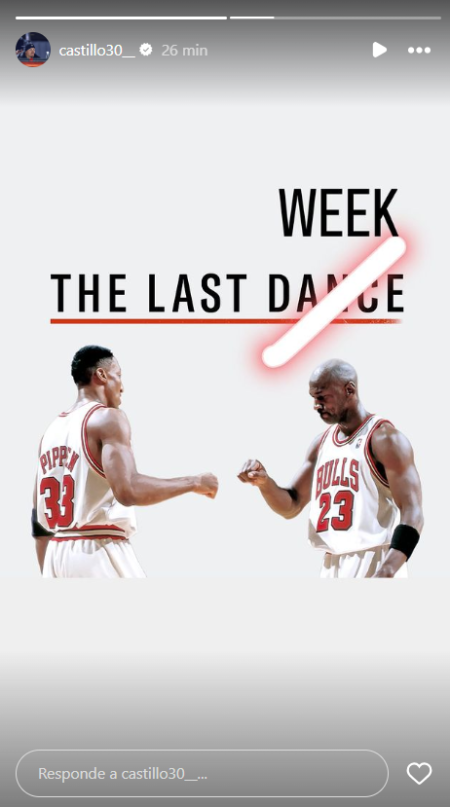 Posteriormente, el atacante de 31 años posteó una segunda historia citando "The Last Dance", aunque tapando la palabra "Dance". Con esto, el texto quedaría como "Lo último".