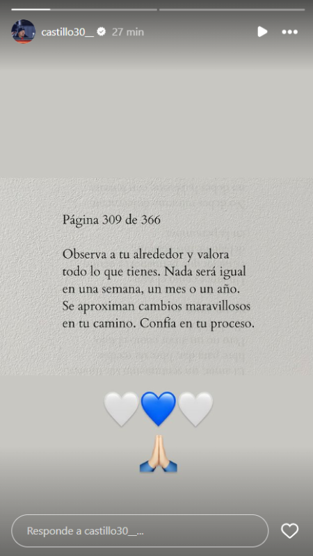"Se aproximan cambios maravillosos en tu camino. Confía en tu proceso", agregando emojis de corazón con los colores de Los Cruzados.