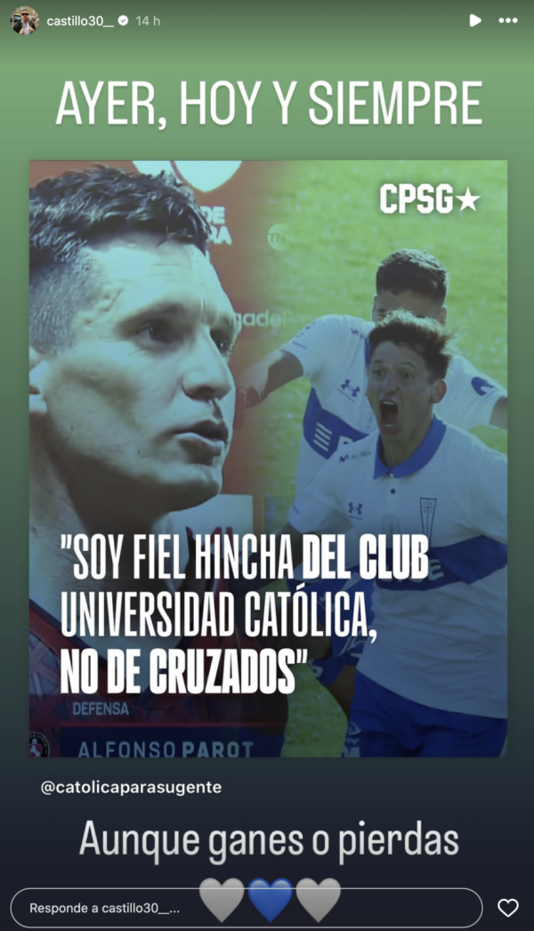 Adicionalmente, el posteo incluyó una declaración de Alfonso Parot, otro referente que dejó la institución en la que aseguró ser "hincha del club Universidad Católica. No de Cruzados".