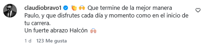 “Que termine de la mejor manera Paulo, y que disfrutes cada día y momento como en el inicio de tu carrera. Un fuerte abrazo Halcón”, comentó el ex capitán de La Roja.
