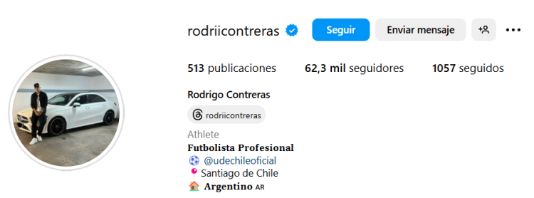 En esta red social, Contreras modificó una parte en concreto. "Futbolista profesional, Universidad de Chile, Santiago de Chile, Argentina", se destaca en su perfil.