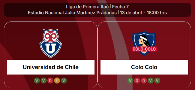 La ANFP dio a conocer este miércoles la programación oficial para el partido entre Universidad de Chile y Colo Colo, válido por la fecha 7° de la Liga de Primera.