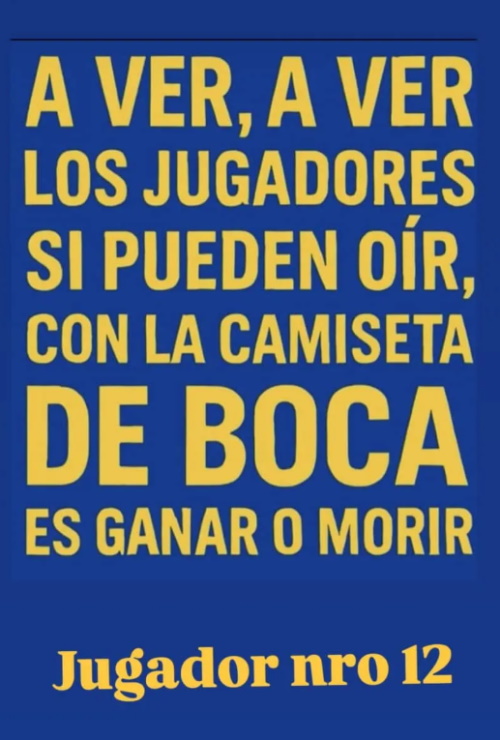 "A ver, a ver los jugadores si pueden oír. Con la camiseta de Boca es ganar o morir", comentó en una historia de Instagram, replicando una canción de estadio.