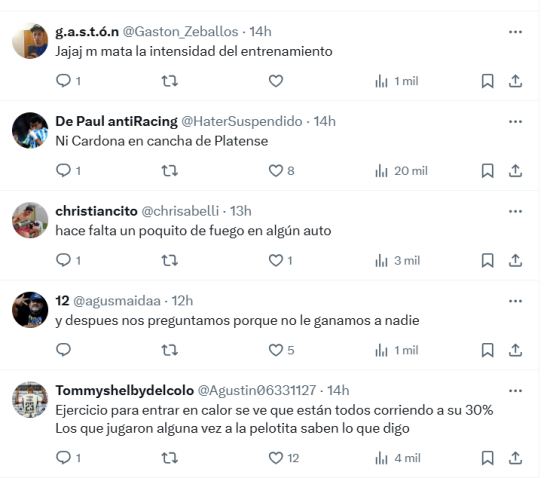 Sin embargo, algunos lo defendieron y aseguraron que recién es la entrada en calor, por lo que no tiene sentido realizar los ejercicios a máxima velocidad.