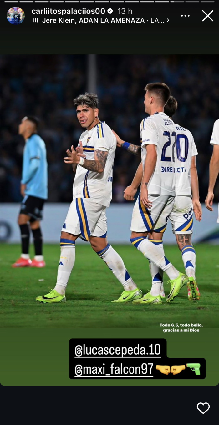 Carlos Palacios se acordó de dos ex compañeros luego de marcar en la victoria de Boca ante Belgrano de Córdoba.
