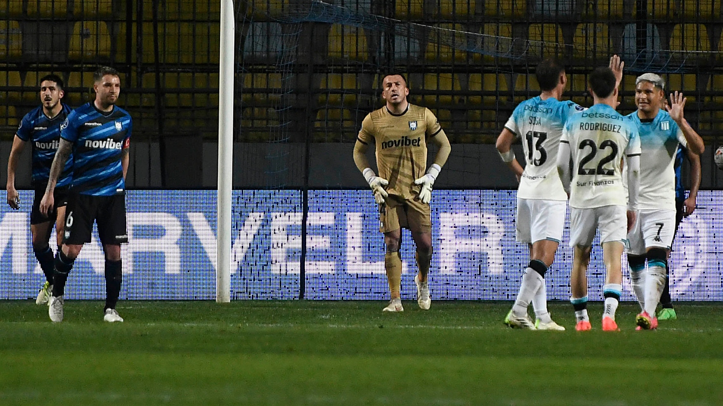 El equipo argentino dirigido por Gustavo Costas, ex DT de Palestino, fue superior al actual campeón del fútbol chileno y que hoy se encuentra en zona de descenso. A los 32 minutos, el goleador de la Academia, Adrián "Maravilla" Martínez abrió el marcador tras batir a Fabián Cerda luego de estirarse y conectar un centro rasante.