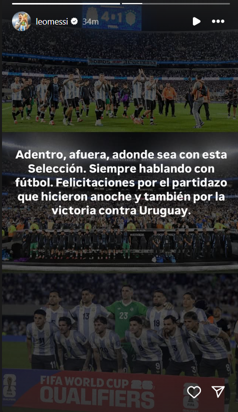La Pulga le mandó un recado a los Pentacampeones y escribió en su Instagram: "Adentro, afuera, adonde sea con esta Selección".