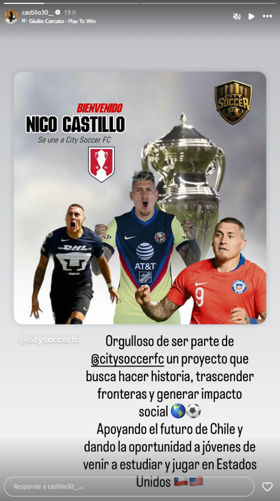 Nicolás Castillo tiene nuevo club. El delantero sorprendió al ser anunciando como nuevo refuerzo del City Soccer FC del ascenso Estados Unidos.