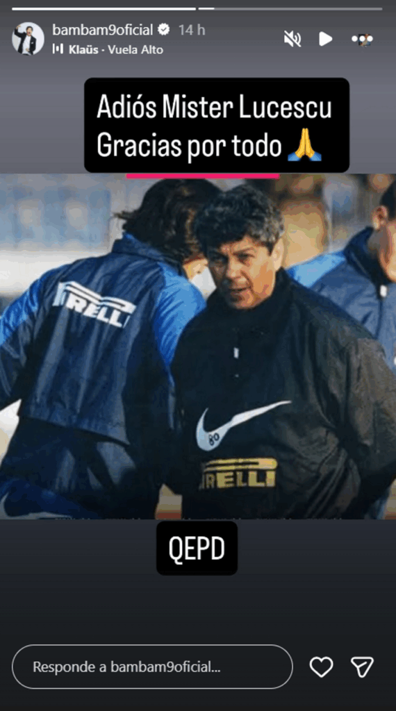 Bam Bam subió una historia en Instagram en que escribió: “Adiós Míster Lucescu. Gracias por todo. Que en paz descanse”, agregan una foto de ambos en el Inter y la canción “Vuela alto”.