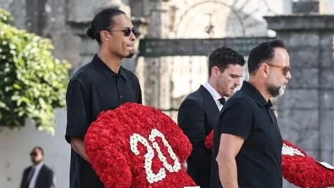 En el velorio, sus compañeros del Liverpool llevaron flores y se mostraron muy cercanos a la familia, especialmente a los tres hijos de Diogo Jota.