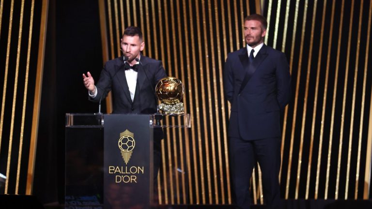 El futbolista del Inter de Miami se convirtió en el primer ganador del premio creado en 1956 que no juega en Europa. Messi, de 36 años, se alzó con el premio gracias a su consagración con Argentina en el Mundial de Qatar 2022. Además, recibió el premio de manos de David Beckham, propietario de su actual club.