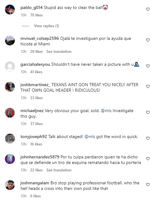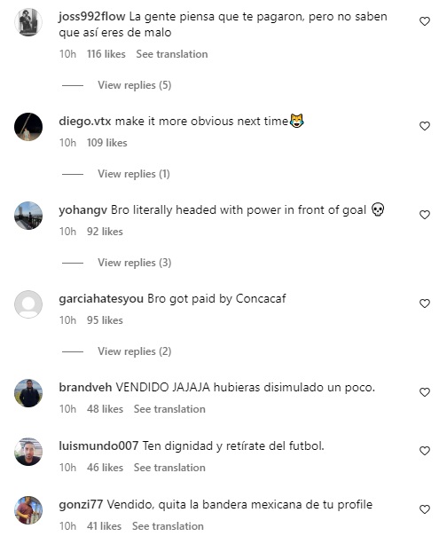 "La gente piensa que te pagaron, pero no saben que eres así de malo", "vendido" o "hubieras disimulado un poco", son parte de lo que se ve en el perfil del futbolista de 25 años.