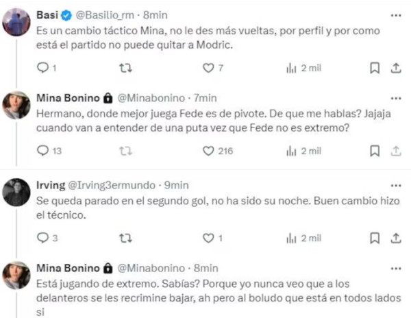 Mina Bonino cuestionó duramente a Carlo Ancelotti por sacar a Federico Valverde en el partido ante el Milan por la Champions League, el que terminó en una dolorosa derrota para el Real Madrid.