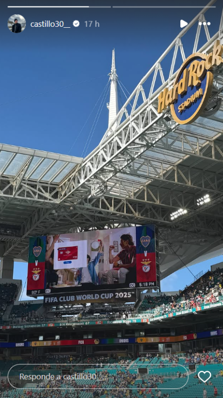 El delantero de Santiago City acudió al Hard Rock Stadium de Miami para ver el choque por el Grupo C, zona que completan el Bayern Múnich y el Auckland City.