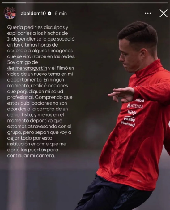 El ariete de 21 años, que llegó a Independiente a mediados de este 2025, no se quedó ahí y continuó: "Comprendo que estas publicaciones no son acordes a la carrera de un deportista, y menos en el momento deportivo que estamos atravesando con el grupo".