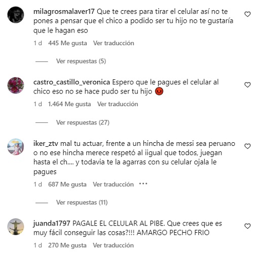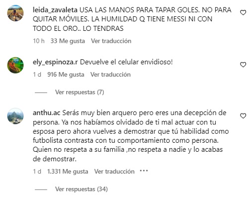 Tras el insólito suceso, los hinchas peruanos se descargaron en el Instagram de Gallese y le exigieron que devuelva o que le pague el celular al fanático.