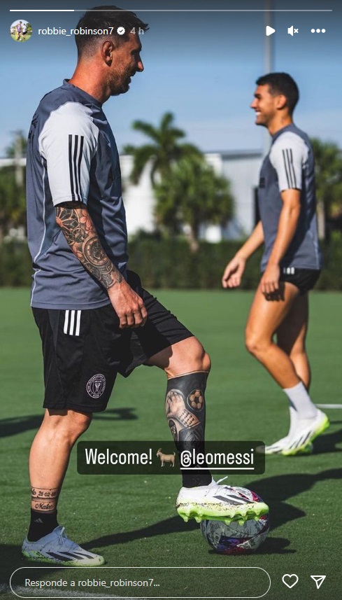 “Bienvenido, Leo”, escribió Robbinson en una historia de Instagram, posteo que está acompañado de una fotografía de un Messi que tiene la pelota bajo su suela izquierda.