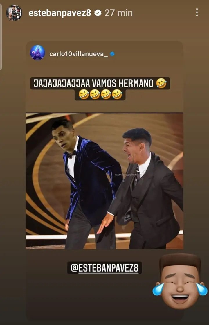 Durante la noche, el incidente que habría sido provocado por una temeridad de Villanueva en una salida de los albos, fue superado con un meme que comparaba su situación con lo sucedido en los Oscars, específicamente el episodio entre Will Smith y Chris Rock.