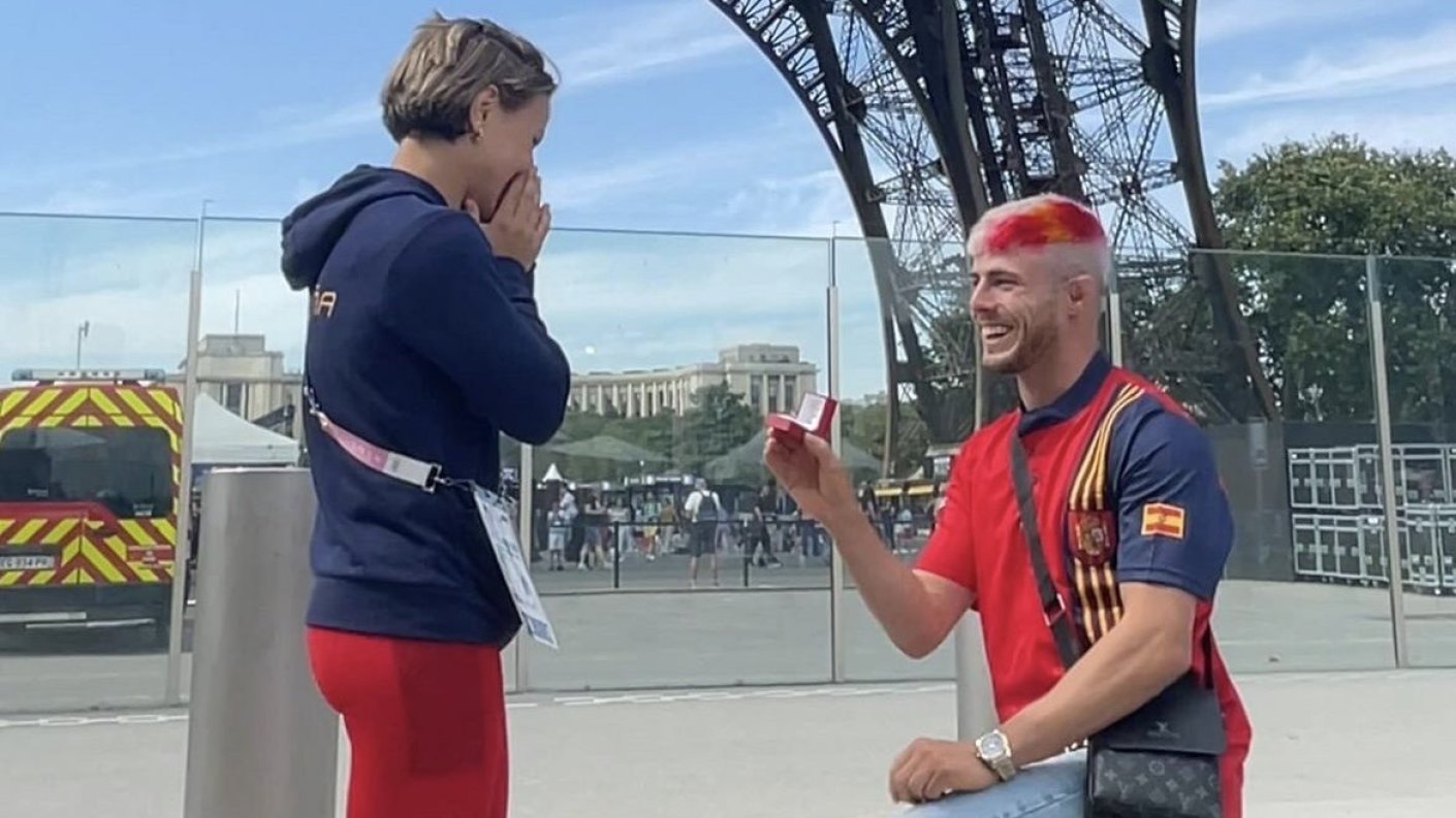 La judoca española Laura Martínez fue sorprendida por su pareja, quien le pidió matrimonio a los pies de la Torre Eiffel en una romántica escena.