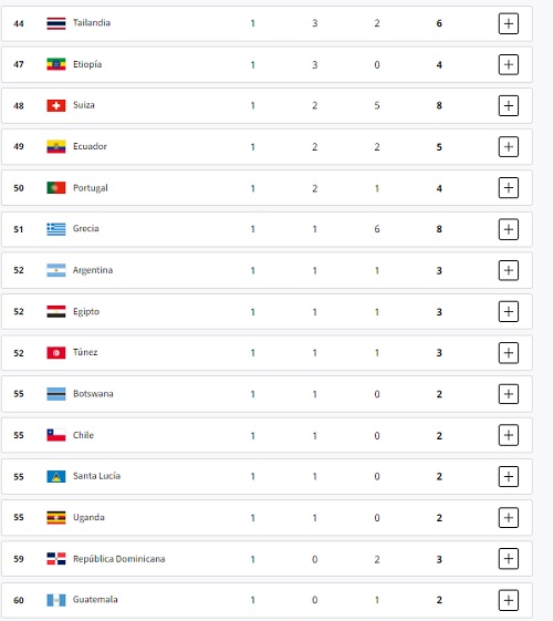 Por su parte, Chile se ubicó en el puesto 55° tras el oro de Francisca Crovetto en el tiro skeet y la plata de Yasmani Acosta en lucha grecorromana.