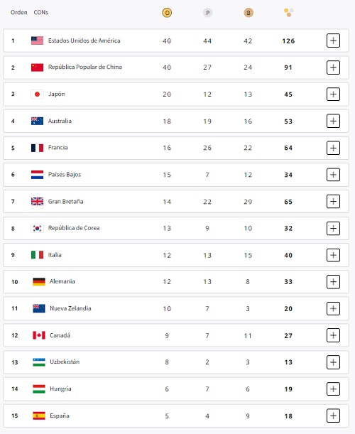 Sin embargo, la nación de las barras y las estrellas superaron al gigante de Asia en la cantidad de preseas, llegando a la impresionante cifra de 126 metales.