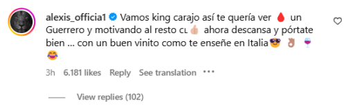 "Vamos King carajo, así te quería ver. Un guerrero y motivando al resto. Ahora descansa y pórtate bien, con un buen vinito como te enseñe en Italia", bromeó el tocopillano.