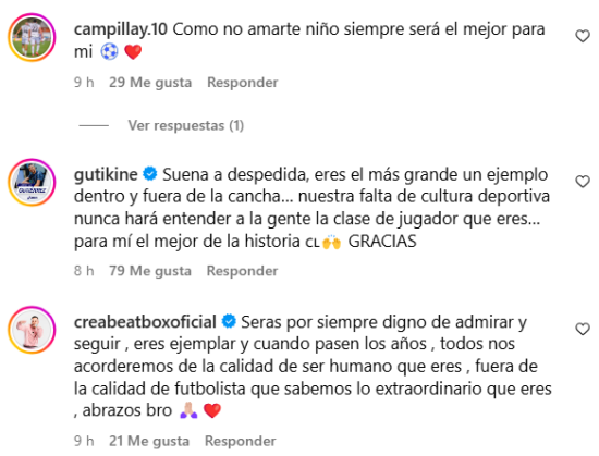 "Suena a despedida, pero eres el más grande", "Cómo no amarte" o "Digno de admirar", señalaron los hinchas en el posteo, el que ya tiene casi 200 mil likes.