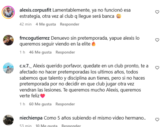 Una lluvia de comentarios recibió Alexis Sánchez tras un posteo en Instagram, donde se mostró entrenando de manera solitaria.