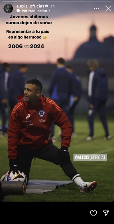 "Jóvenes chilenos, nunca dejen de soñar. Representar a tu país es algo hermoso. 2006-2024", escribió el goleador histórico de La Roja en una historia de Instagram.