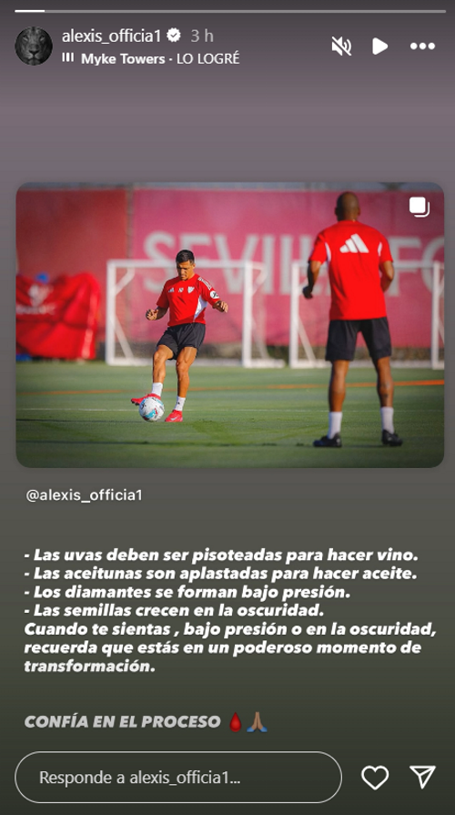 En medio de su gran inicio de temporada en el Sevilla, Alexis Sánchez subió una particular historia a su cuenta de Instagram.