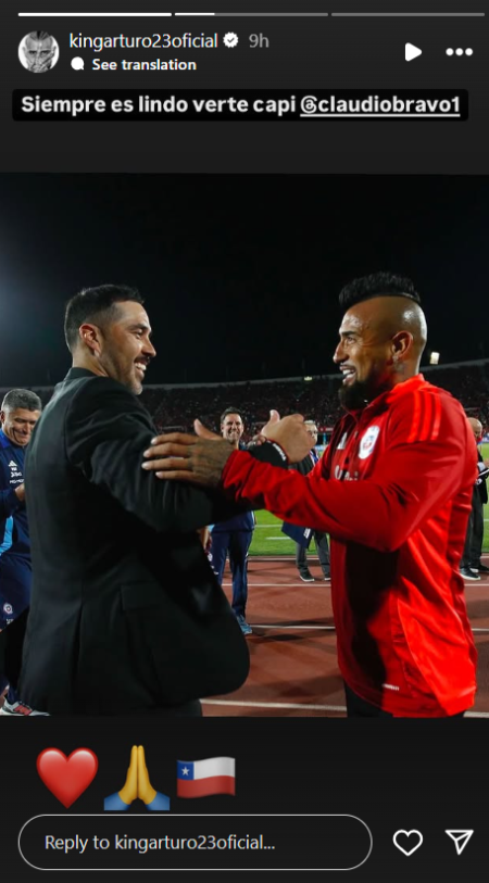 A través de una historia de Instagram, el Rey le destinó emotivas palabras a su ex compañero de La Roja, con quien compartió en el bicampeonato de América.
