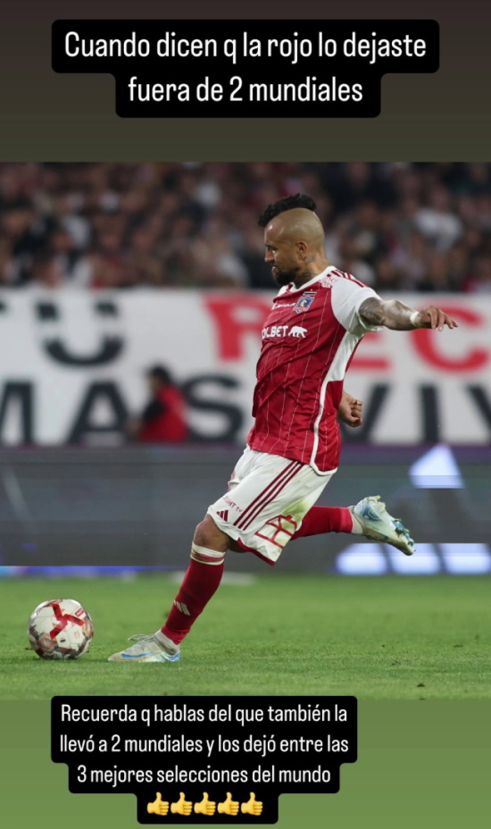 En una primera historia de Instagram, el mediocampista de 37 años subió una foto del duelo del Cacique contra Audax Italiano y disparó munición pesada.