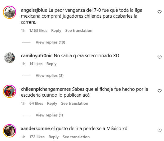 Tras el saludo de la cuenta oficial de La Roja por su cambio de club, los fanáticos repletaron la publicación y apuntaron contra su decisión de ir a México.